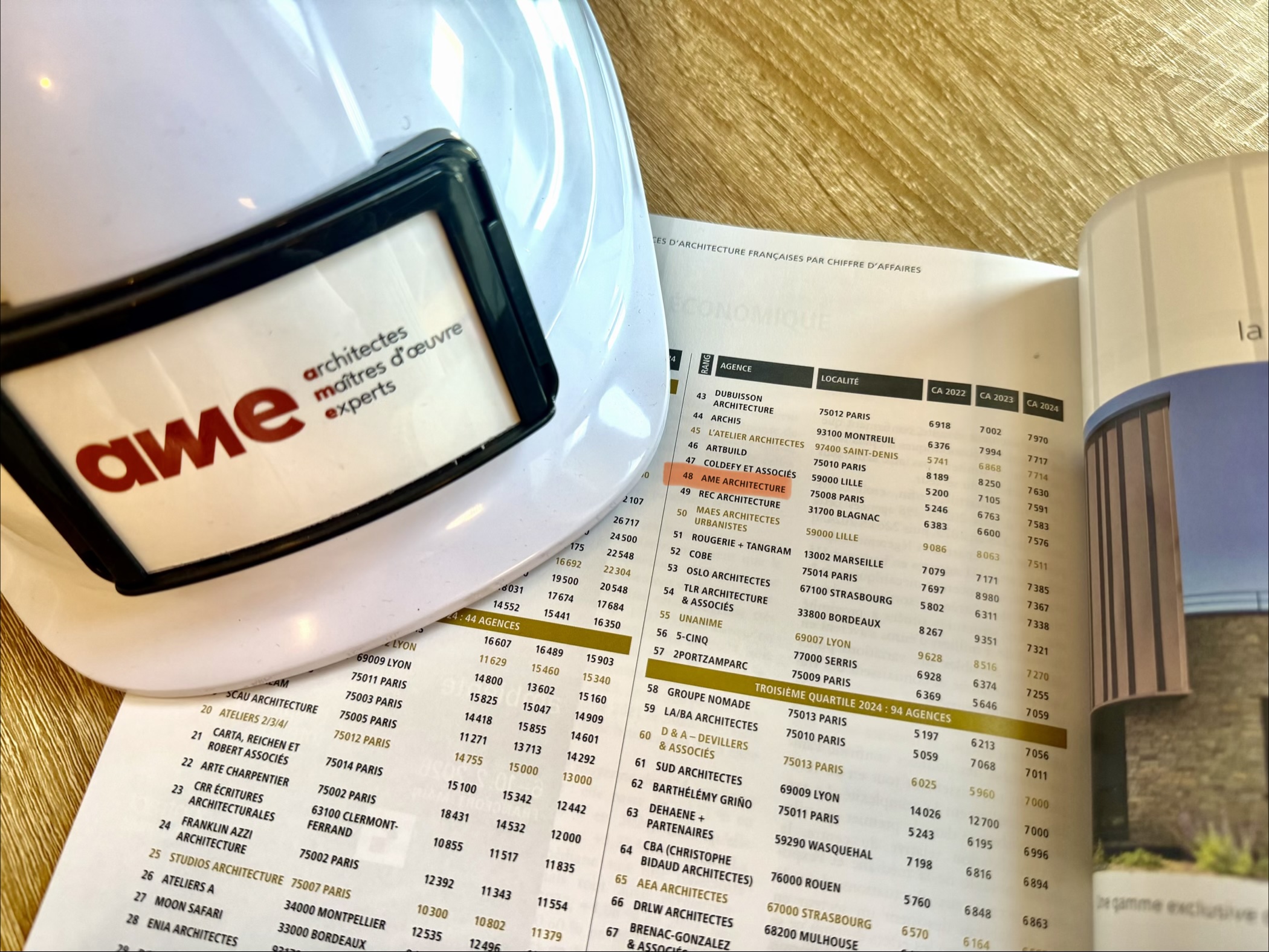 AME Architecture classée 48ᵉ agence française par le magasine «d’architecture»
